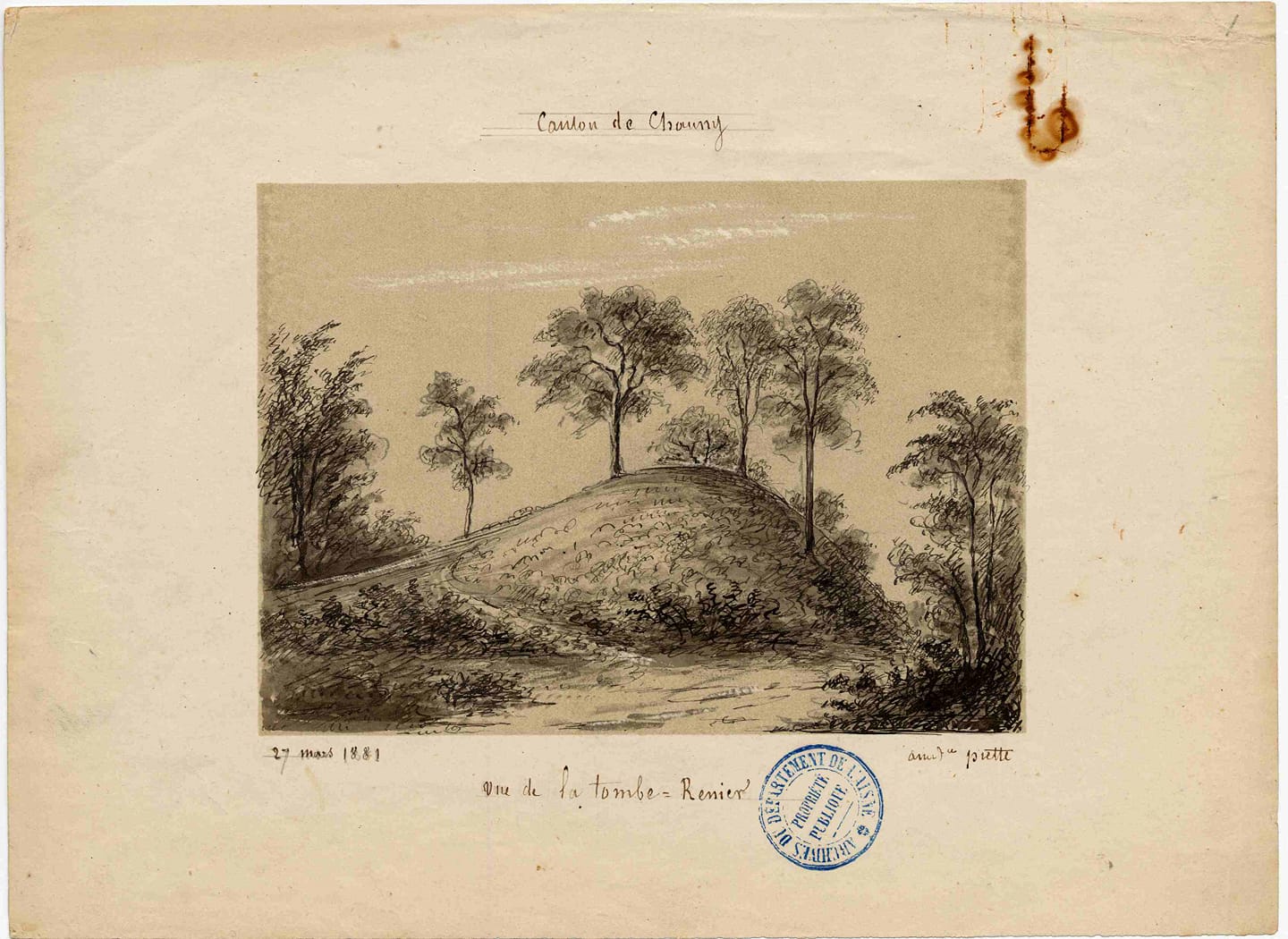 Au lieu du bouquet de vieux arbres, qui pour les habitants de la contrée, en marquait l'emplacement, la guerre de 1914-1918, n'a laissé qu'un mamelon dénudé, caché dans les bois de châtaigniers, difficile à trouver à moins d'être initié.